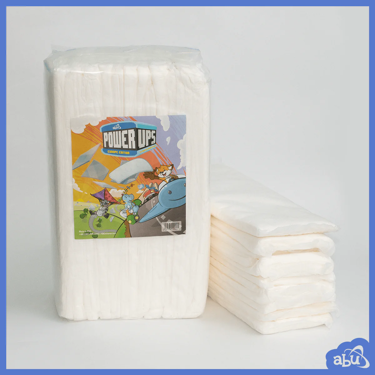 Placing ABU Powerups is easy, simply slip the pad between any ABU diaper’s leg guards before taping and wear your diaper as normal. Soon you’ll be ready to kiss those squishy meanies goodbye with your new powered up super ABU diaper! At about 20mm thick, and over 1,000ml absorbency, and 4.5cm swelling capacity, these diaper boosters pack a super punch and help fight leaks like a little hero. Every package of ABU PowerUps Europe Edition comes with 20 diaper boosters, making these heroically powered pads a handy go-to for quick and instant diaper upgrades! Order PowerUps boosters now and triumph over those meanie diaper monsters with longer-lasting endurance for any ABU diaper!